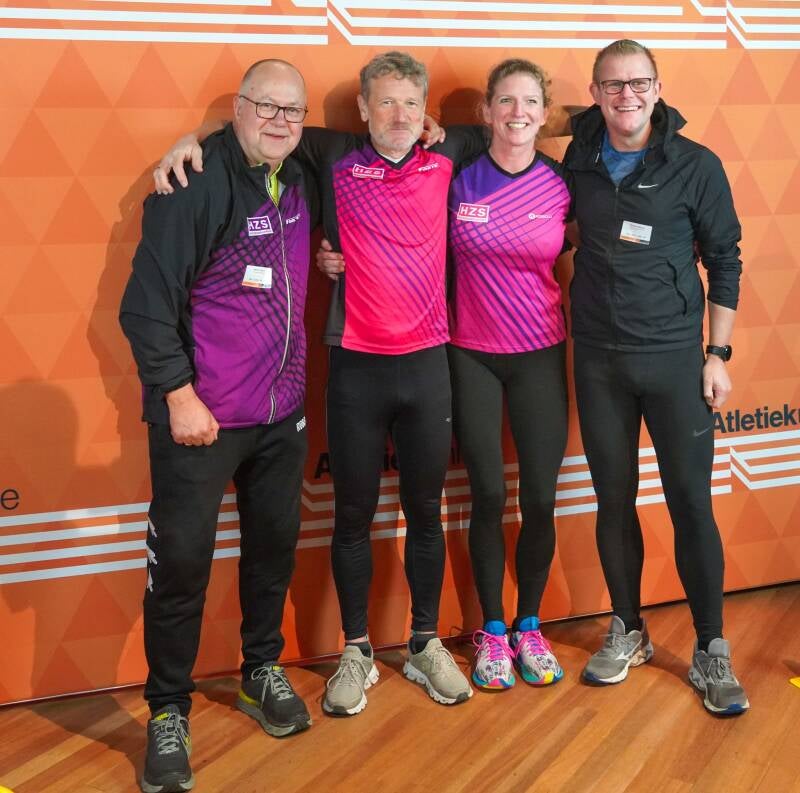 Martin, Arjan, Susanne en Richard tijdens de jaarlijkse Looptrainersdag van de Atletiekunie in november 2022.
